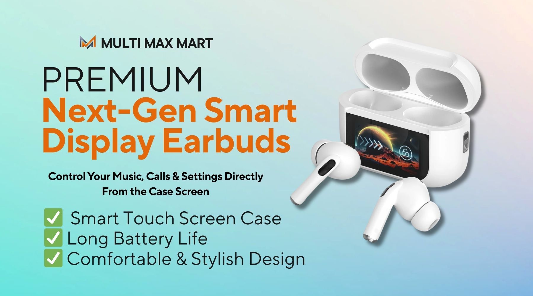 Smart Touchscreen Bluetooth Earbuds with LCD Display 360° Surround Sound 11mm Driver Noise Optimization Premium Audio Quality